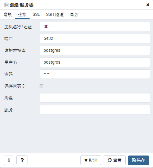 主機名稱就是 service 名稱,也就是 db。其他資訊就是按照我們在 docker-compose.yml 怎麼定義的,就怎麼填進去就可以了。點擊右下角的保存,即可連線資料庫!