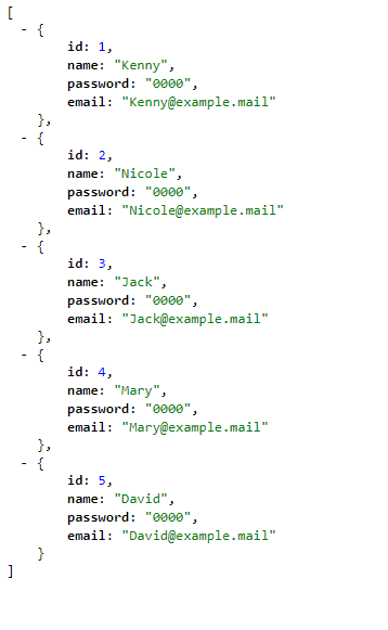 5INSERT INTO person (name, password, email) VALUES ('Kenny', '0000', '[email protected]');