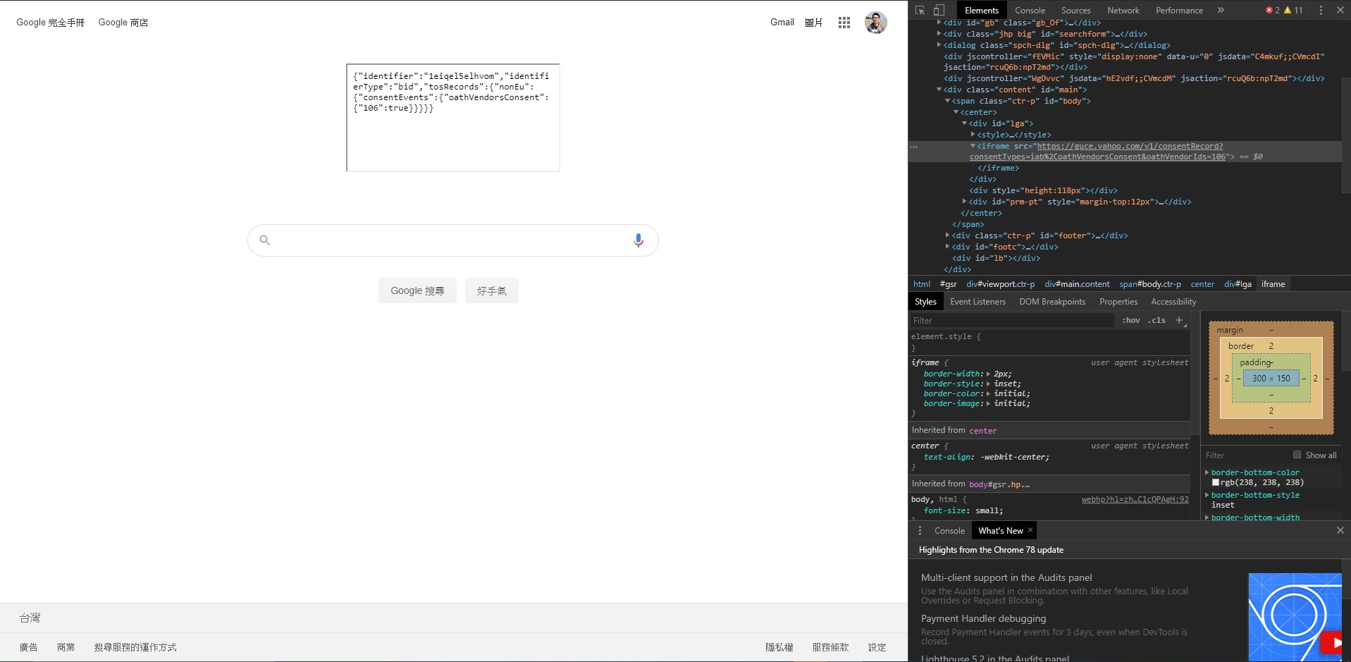 <iframe src="剛剛複製的網站服務網址">\</iframe>。但如果我們在 google.com 用開發者工具打開 console 並輸入以下內容: