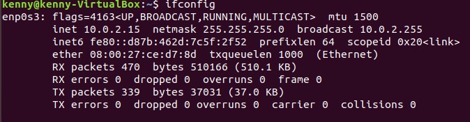 可以看到以下畫面,而 inet 後面這個 IP 就是代表此虛擬機的 IP