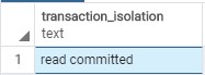 1 | SHOW TRANSACTION ISOLATION LEVEL; |