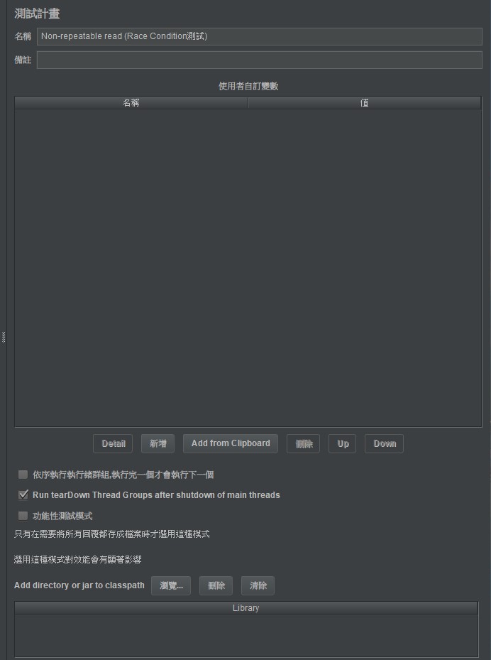 在下面瀏覽那邊點集之後,選的路徑就是 Jar 檔的路徑就可以了。但是這樣的方式比較麻煩,只是對測試計畫下的所有 Request 有作用而已。